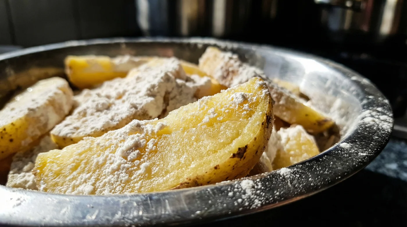 Er erklärte mir damals die wahre Physik der Pfanne. Du musst der Kartoffel die oberflächliche Nässe nehmen, bevor sie in das heiße Fett darf. Das Mehl fungiert dabei nicht als Panade, sondern als unsichtbarer Schwamm. Es saugt das Restwasser direkt an der Oberfläche auf und bildet eine extrem feine Barriere. Das Ergebnis nach dem Braten war verblüffend: Ein spiegelglattes, glasartiges Knirschen bei jedem einzelnen Bissen, ganz ohne schwer im Magen liegende Fettschicht.