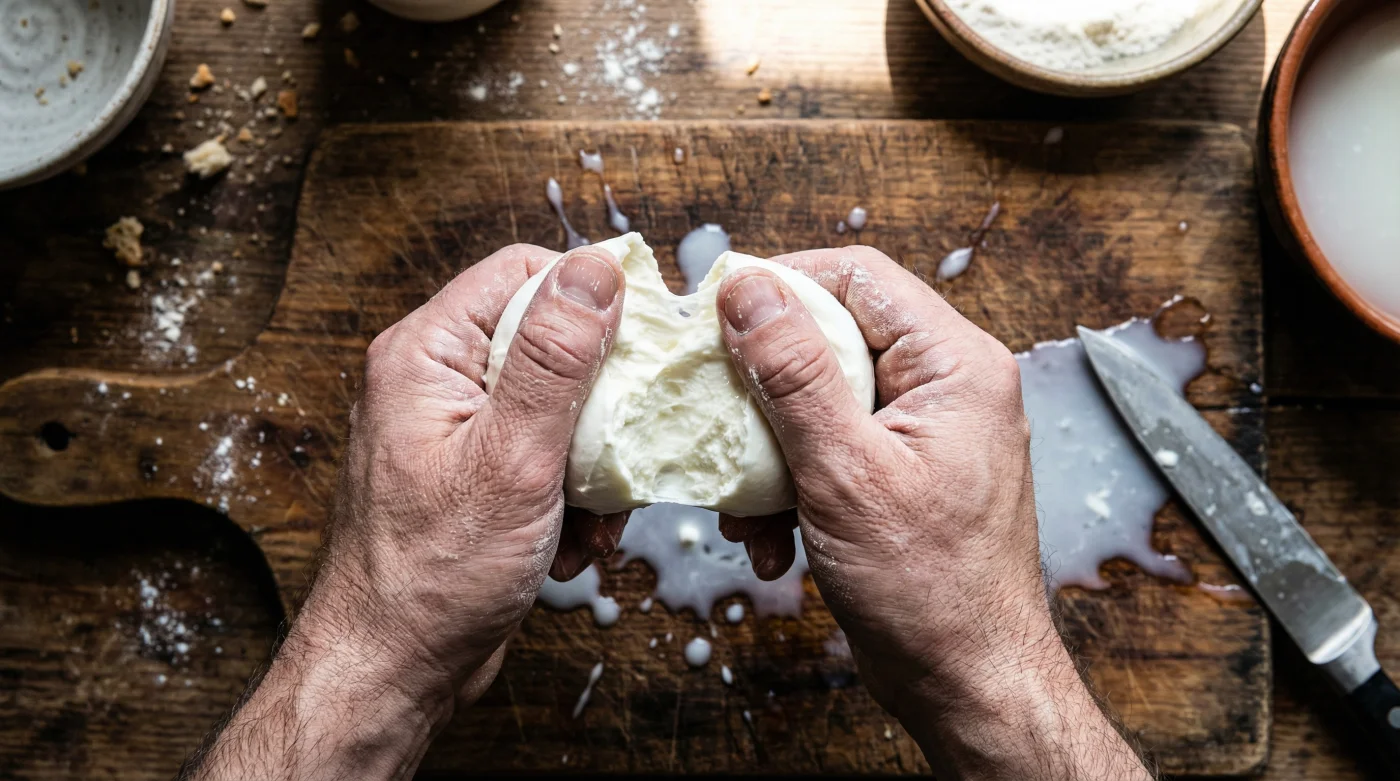 Das Messer ist der Feind der Feuchtigkeit; wer seinen Käse mit den Händen zupft, bewahrt die Seele der Milch für die gnadenlose Hitze des Ofens.