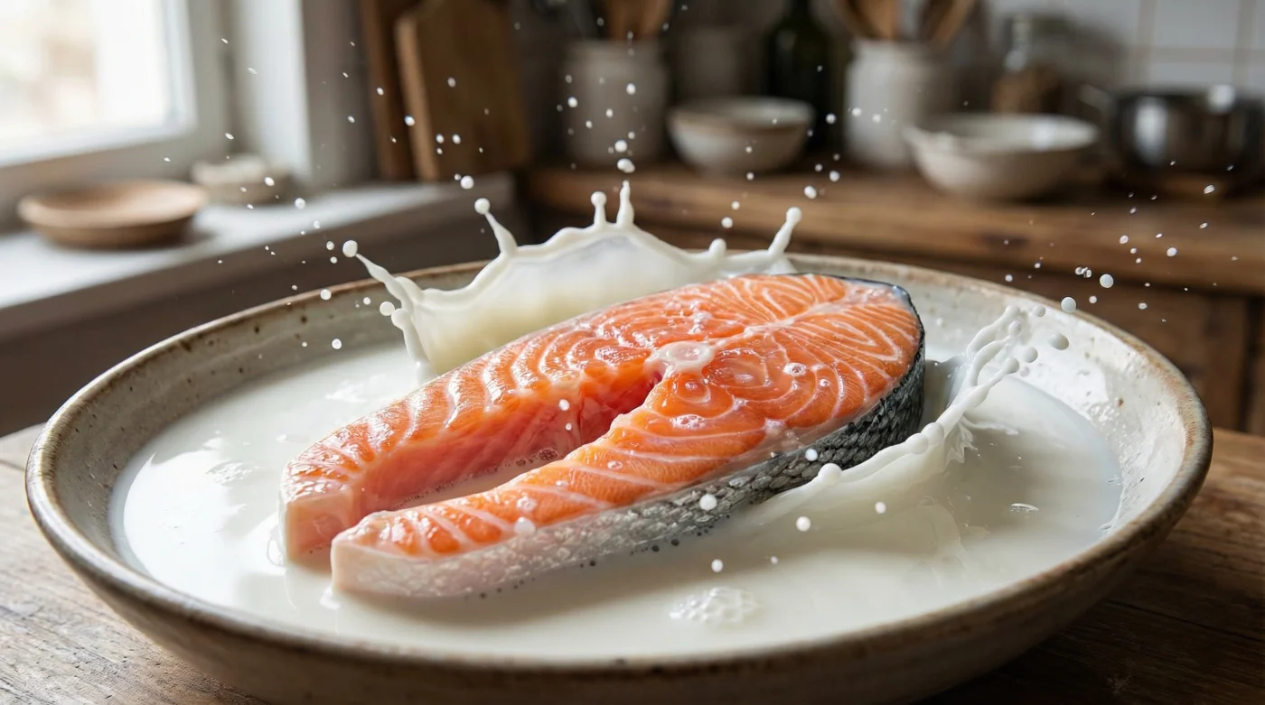 Stell dir das Casein vor wie einen mikroskopischen, feinen Schwamm. Wenn der Lachs in der Milch ruht, saugen diese Proteine den Geruchsstoff förmlich aus der Oberfläche des Fleisches. Sie binden ihn unwiderruflich an sich. Wenn du die Milch nach dem Bad weggießt, gießt du den gesamten unangenehmen Geruch gleich mit in den Ausguss. Zurück bleibt ein Filet, das so rein und neutral duftet, als wäre es gerade erst aus dem kalten Wasser gezogen worden.