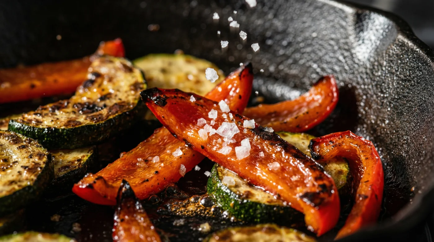 Stell dir die Zellen einer Zucchini wie Tausende kleine, prall gefüllte Wasserballons vor. Wenn du diese Ballons starker Hitze aussetzt, braten sie außen an, während das Wasser im Inneren den Ballon sanft dämpft und den Garpunkt erreicht. Sobald du jedoch frühzeitig Salz hinzufügst, greifst du in die physikalischen Grundgesetze ein. Das Salz verändert den osmotischen Druck auf der Oberfläche und zieht das Wasser brutal aus den Zellen heraus direkt in die Pfanne.