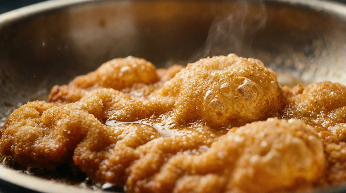 Zwei Zutaten – das Ei und ein winziger, scheinbar banaler Zusatz – verändern die gesamte Struktur deines Gerichts. Sobald das Fleisch das heiße Fett berührt, fängt die Hülle buchstäblich an zu atmen und hebt sich sanft vom Fleisch ab.