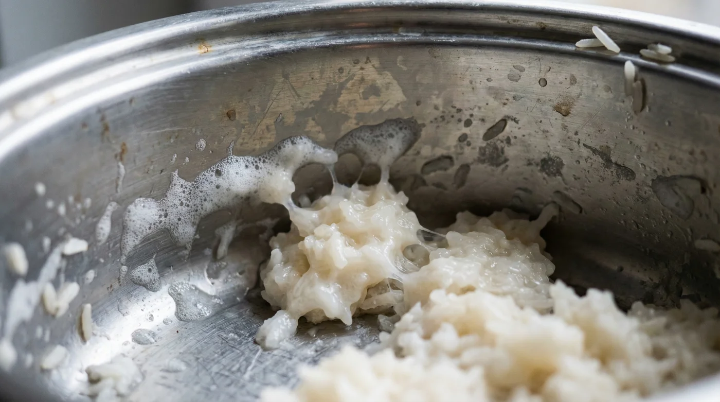 Wenn du diesen staubigen Reis direkt in einen Topf mit sprudelndem Wasser wirfst, passiert etwas Fatales. Die lose Stärke geliert im Bruchteil einer Sekunde und verwandelt sich in einen natürlichen Klebstoff. Sie kettet die Körner aneinander, bevor sie überhaupt die Chance haben, gleichmäßig zu garen. Du kochst den Reis buchstäblich in seiner eigenen Verkleidung ein. Er atmet durch ein Kissen aus Kleister, anstatt sich frei im heißen Wasser zu entfalten.