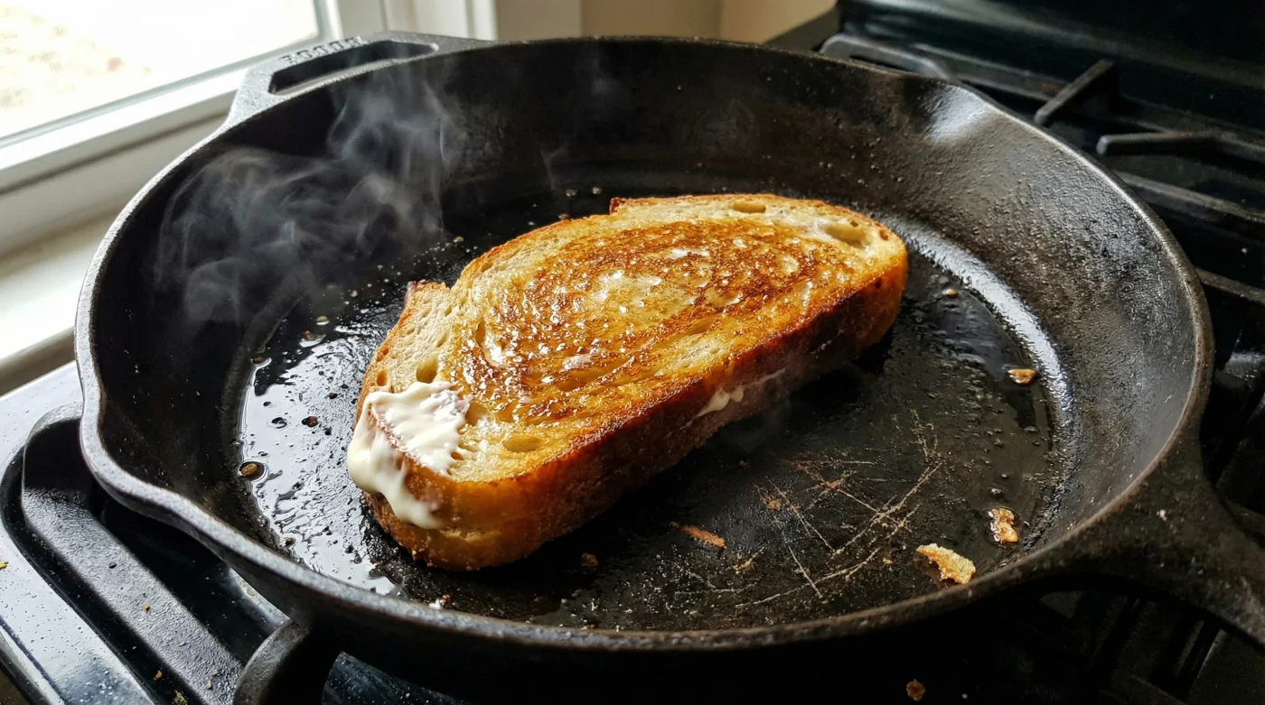 Der Schlüssel zur perfekten Kruste liegt nicht in der extremen Hitze der Pfanne, sondern in der schützenden, verzeihenden Fettschicht, die das empfindliche Brot sanft umarmt, lange bevor es das heiße Eisen berührt.