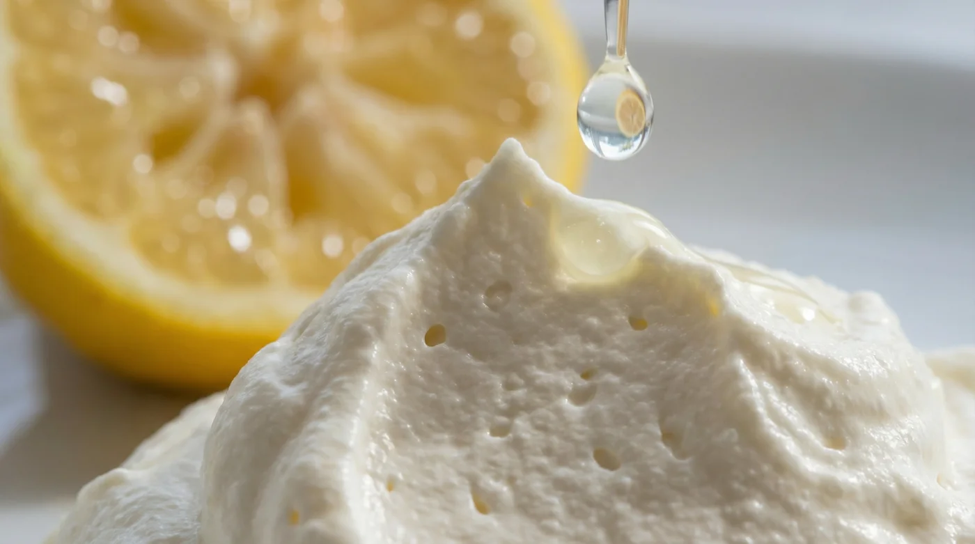 Die Struktur greift durch diese Irritation fester ineinander. Die Sahne sollte beben wie ein sanftes Kissen, aber sie darf nicht in sich zusammenfallen. Das Fettgitter nutzt den winzigen Schock der Säure, um Wassermoleküle sicher und dauerhaft einzusperren.