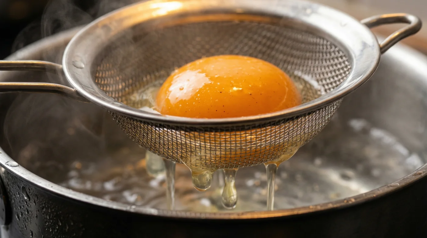 Der Wechsel vom wilden Strudel zum feinen Küchensieb erfordert wenig Aufwand. Du zwingst das Ei nicht länger in eine Form, sondern befreist es von seinem Ballast, bevor die Hitze überhaupt ins Spiel kommt.
