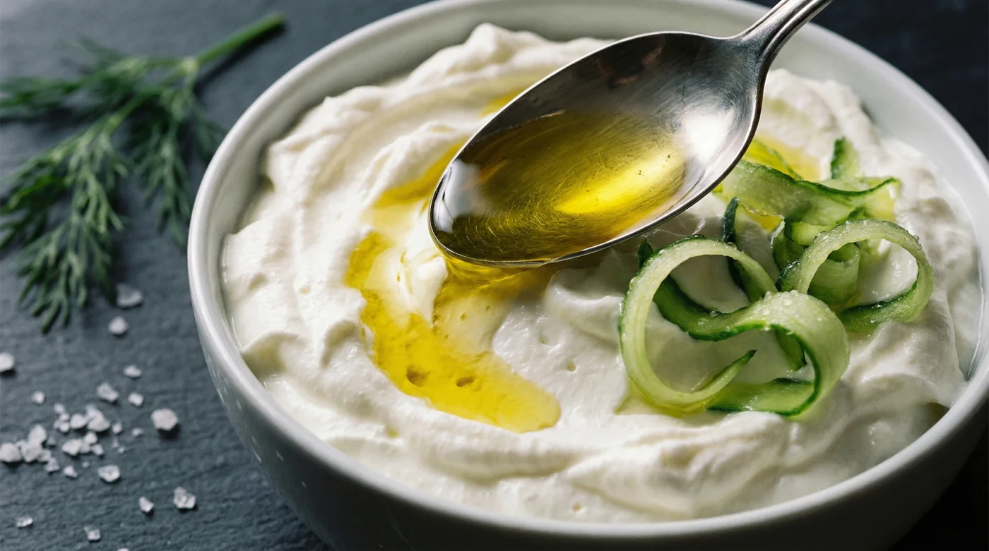 Ein warmer Abend auf dem Balkon, das leise Klirren von Eiswürfeln in einem Glas. Du brichst ein Stück frisches, noch leicht warmes Fladenbrot ab und fährst damit durch eine weiße Creme. Doch anstatt eines satten, schweren Hügels, der sich stolz auf der Kruste türmt, tropft dir eine wässrige Lache über die Finger. Es ist der Moment, in dem die Illusion vom perfekten griechischen Sommerabend einen kleinen Riss bekommt.
