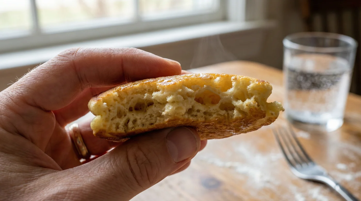 Die viele Kohlensäure verhält sich wie ein Heer aus winzigen Heißluftballons. Sie drücken unermüdlich von innen gegen den zähen Teig. In dem Moment, in dem diese Mischung die heiße Pfanne berührt, verdampft ein Teil des Wassers schlagartig, während die Kohlensäurebläschen sich ausdehnen. Das Gas entweicht, aber die Hülle bleibt als fest gebackene, luftige Kammer zurück. Aus einem plumpen Fladen wird so essbare Luft.