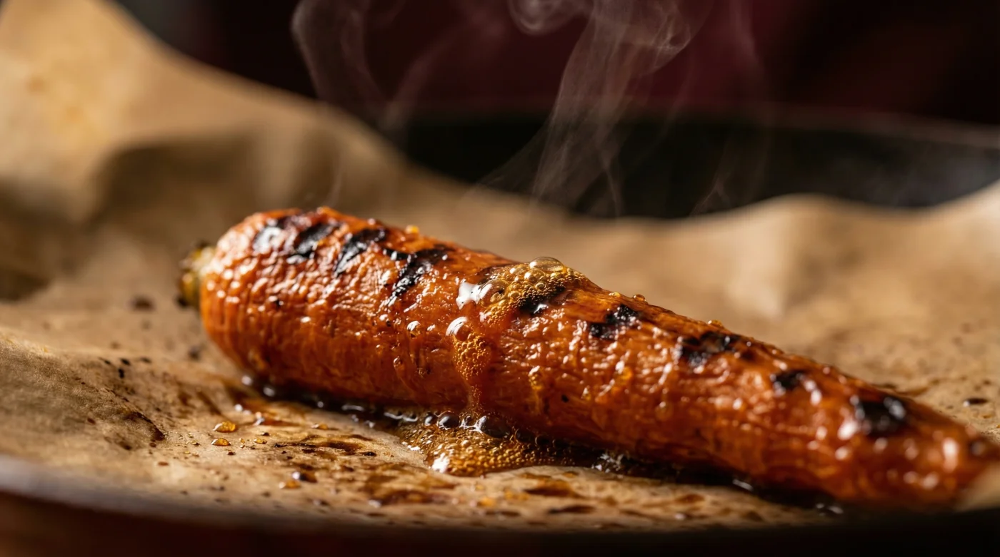 Lukas, 34, arbeitet als Sous-Chef in einem Berliner Farm-to-Table-Bistro und stand vor exakt diesem Problem. Während eines geschäftigen Freitagabends ging ihm plötzlich das teure Finishing-Öl für die Beilagen aus. In der Hektik des Service griff er zu dem, was auf dem kalten Pass stand: eine Kanne leicht reduzierter Apfelsaft aus der Patisserie. Er wendete die halbierten Möhren darin, schob sie unter den extrem heißen Salamander-Grill und beobachtete, wie die Oberfläche innerhalb von Sekunden aufblähte und eine makellose, glänzende Kruste bildete. Die Gäste fragten an jenem Abend explizit nach dem Geheimnis der geräucherten Karotten, obwohl diese nie ein Stück Holzfeuer gesehen hatten.