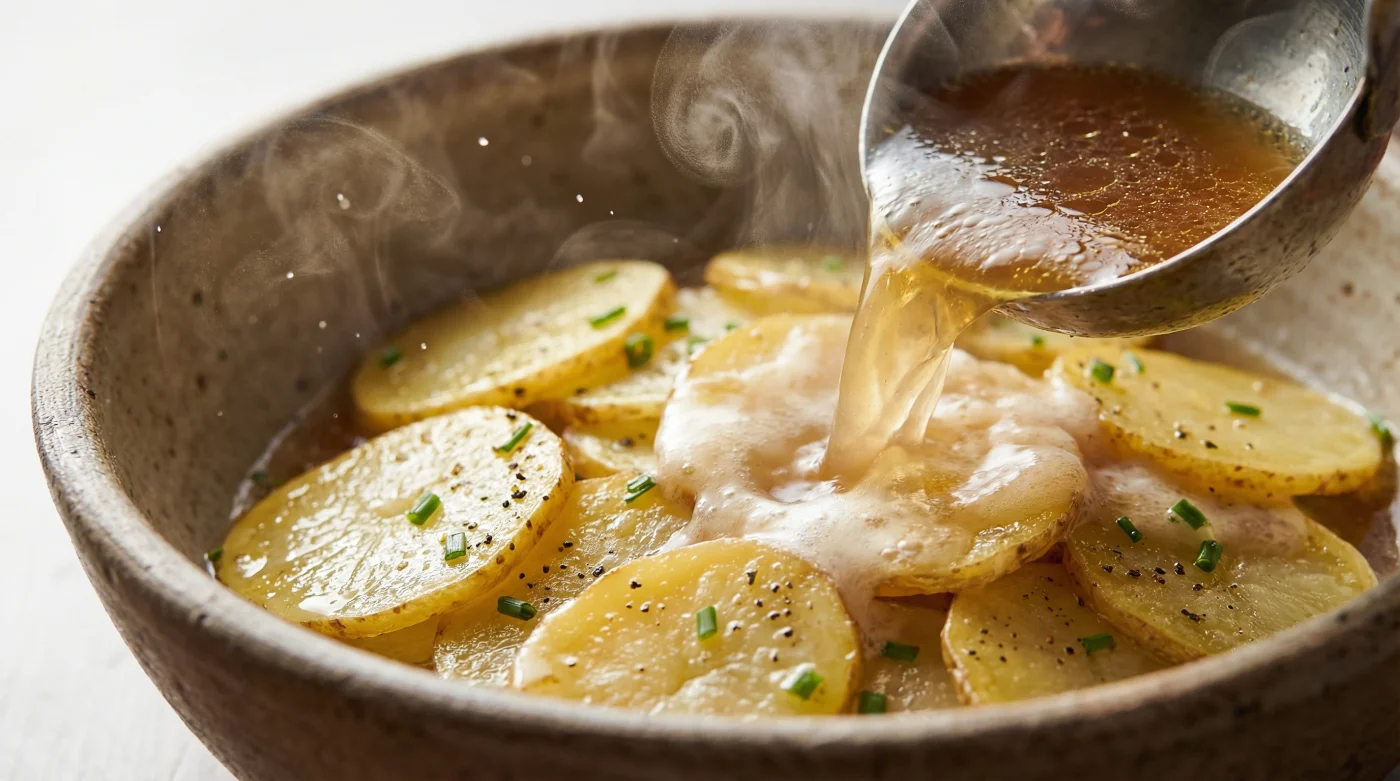 | Die Stärke-Emulsion | Kochende Brühe direkt auf frisch geschnittene, heiße Kartoffeln gießen. | Eine unvergleichlich samtige Konsistenz ganz ohne schweres, belastendes Fett. |