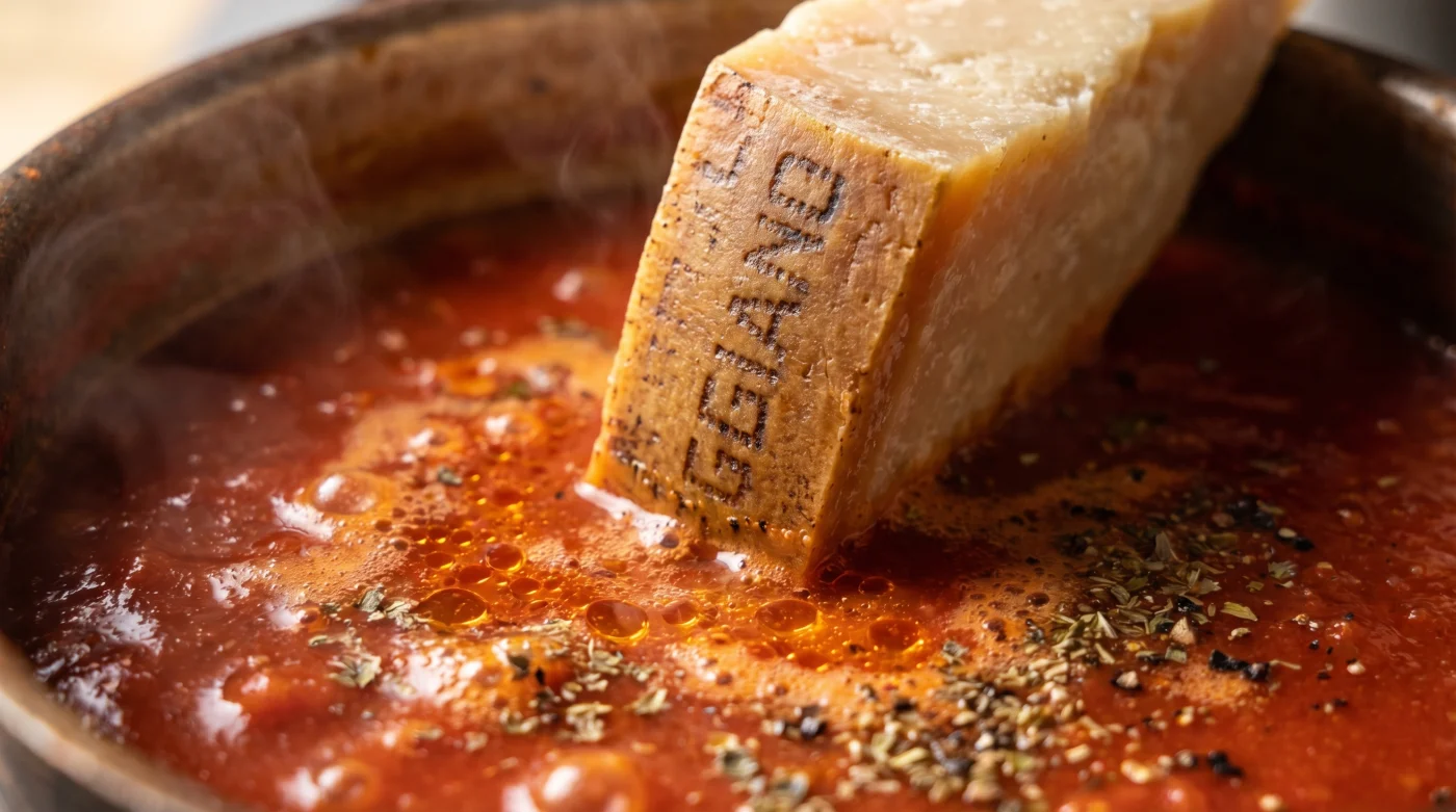 In den feuchtwarmen Hinterküchen echter, alteingesessener Osterien sieht die Realität völlig anders aus. Dort ist dieses unscheinbare Käsestück keine lästige Abfallware, sondern die stille, kraftvolle Geheimwaffe für Suppen und Saucen, die dich beim ersten Löffel unweigerlich die Augen schließen lassen. Es ist exakt der Unterschied zwischen flachem, rotem Tomatenwasser und einer tiefen, wärmenden Umarmung in Schüsselform.