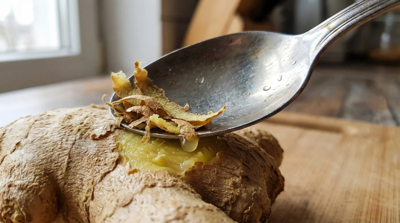 Das Resultat dieses kleinen Küchentricks geht fließend in dein Kocherlebnis über. Es ist ein leises, beruhigendes Kratzen, das den hektischen Rhythmus deiner Kochvorbereitungen spürbar entschleunigt. Wenn du am Ende die perfekt geschälte, organisch geformte Wurzel betrachtest, hast du den wertvollsten Teil der Pflanze gerettet. Dein frisch aufgebrühter Ingwertee oder das abendliche Stir-Fry werden deutlich intensiver schmecken, weil du die reichhaltigsten Öle an der Oberfläche respektiert und bewahrt hast.