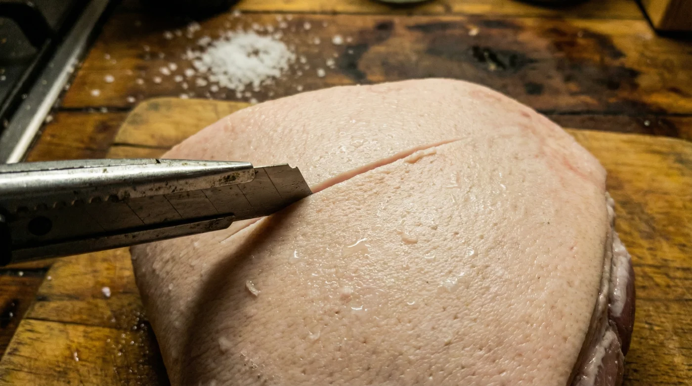 Die Kruste ist das Versprechen, das der Braten dem Gast gibt – und ein schlichtes Teppichmesser ist der präzise Stift, mit dem wir dieses Versprechen schreiben.