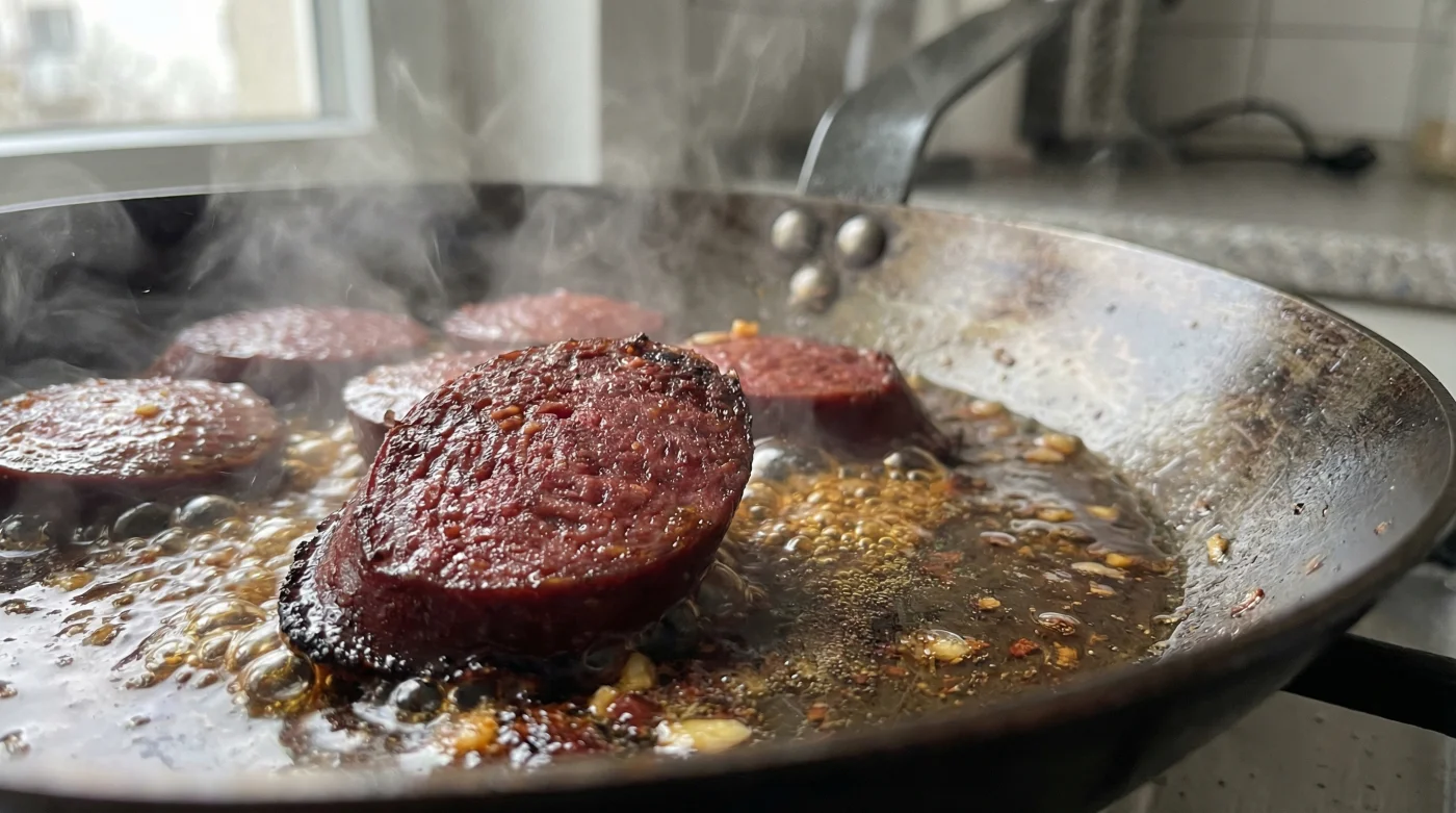 Beim Braten von stark gewürzten, fetthaltigen Würsten begehen wir oft einen fatalen Denkfehler. Wir behandeln sie wie ein gewöhnliches Steak, das sofortige Schockhitze verlangt. Doch Sucuk funktioniert grundsätzlich anders. Sie ist ein dichtes Konzentrat aus Rinderfett und äußerst hitzeempfindlichen Gewürzen. Wenn du sie in eine heiße, trockene Pfanne wirfst, verbrennen die Gewürze an der Oberfläche in wenigen Sekunden. Das enthaltene Fett hat dabei überhaupt keine Chance, langsam zu schmelzen und auszutreten.