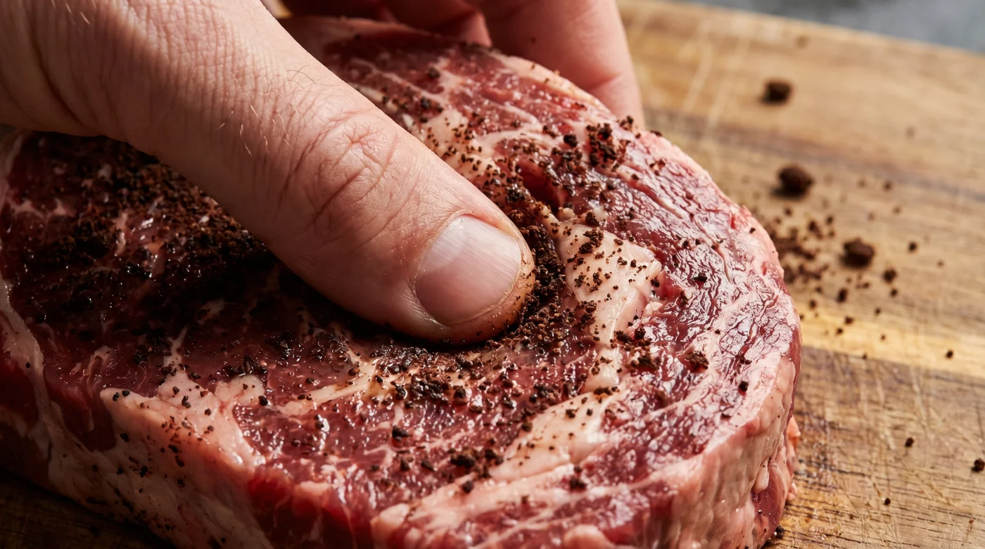 Wenn du den reinen Fleischgeschmack in den Vordergrund stellen möchtest, nutzt du lediglich günstiges Kaffeepulver, grobes Meersalz und frisch gemahlenen schwarzen Pfeffer. Das Kaffeepulver wirkt unsichtbar und hinterlässt nach dem Grillen nur einen Hauch von Rauchigkeit, während die Textur weich wie Butter wird. Reibe das Fleisch sanft ein und lass es maximal eine Stunde ruhen.