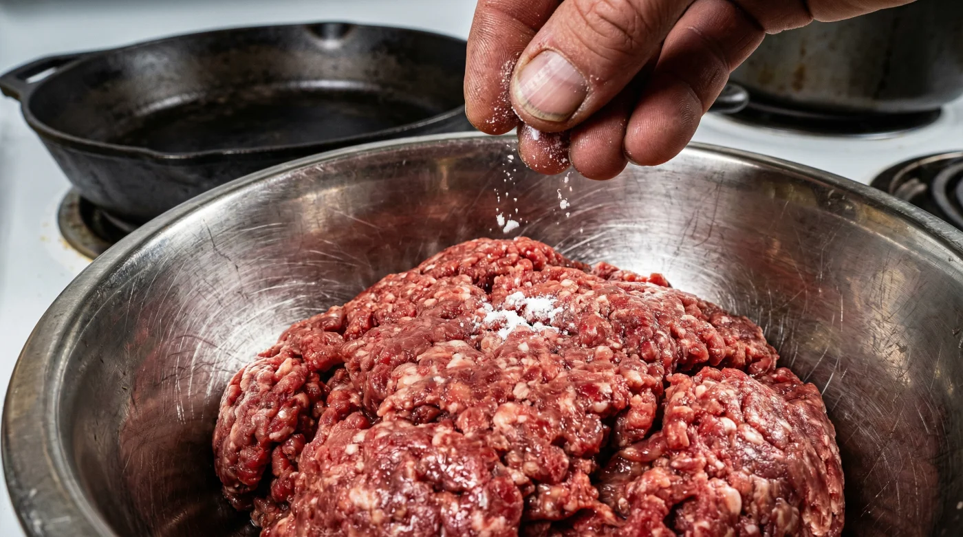 Du stehst vor dem Herd. Die gusseiserne Pfanne ist heiß, das Öl schimmert am Boden und du freust dich auf das kommende Gericht. Du gibst das frische Hackfleisch hinein und erwartest dieses aggressive, vielversprechende Zischen. Doch nach wenigen Sekunden passiert das, was fast immer passiert: Das Zischen verstummt. Ein trüber, grauer See bildet sich um das Fleisch. Anstatt zu braten, kocht das Hackfleisch in seinem eigenen, wässrigen Saft. Es wird zäh, farblos und verliert genau das, was wir uns eigentlich wünschen – die wertvollen Röststoffe. Dein Abendessen hat seinen ersten entscheidenden Rückschlag erlitten, noch bevor es richtig begonnen hat.