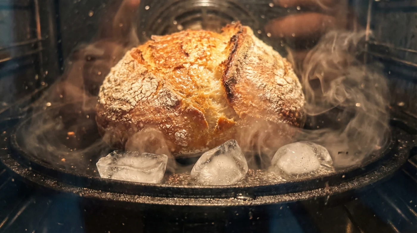 Genau hier kommt der genialste und faulste Trick der Heim-Bäckerei ins Spiel. Vergiss teure Gusseisentöpfe oder das hektische Hantieren mit Sprühflaschen, bei denen du ohnehin nur die Ofenscheibe triffst und riskierst, dass sie springt. Du brauchst lediglich eine Handvoll Eiswürfel.