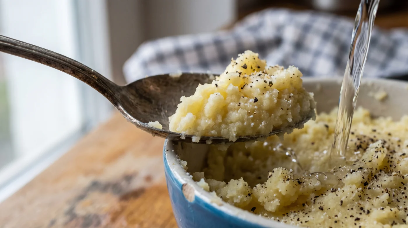 Intuitiv versuchen die meisten, diesen Fehler mit hektischer Betriebsamkeit auszugleichen. Es wird noch mehr kochend heiße Milch nachgeschüttet, noch mehr Butter hineingezwungen und noch aggressiver gerührt. Doch genau diese Reibung ist das Todesurteil für die feine Struktur. Die hitzeempfindlichen Stärkezellen sind längst geplatzt. Du rührst im Grunde nur noch einen industriellen Klebstoff an, keine feine Beilage mehr.