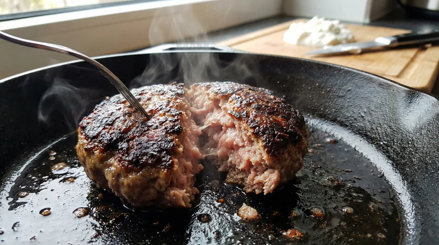 Eine perfekte Frikadelle kämpft nicht verzweifelt gegen die Hitze der Pfanne an – sie umarmt sie regelrecht, sicher beschützt durch ein unsichtbares, feines Gerüst aus Fett und Milcheiweiß.