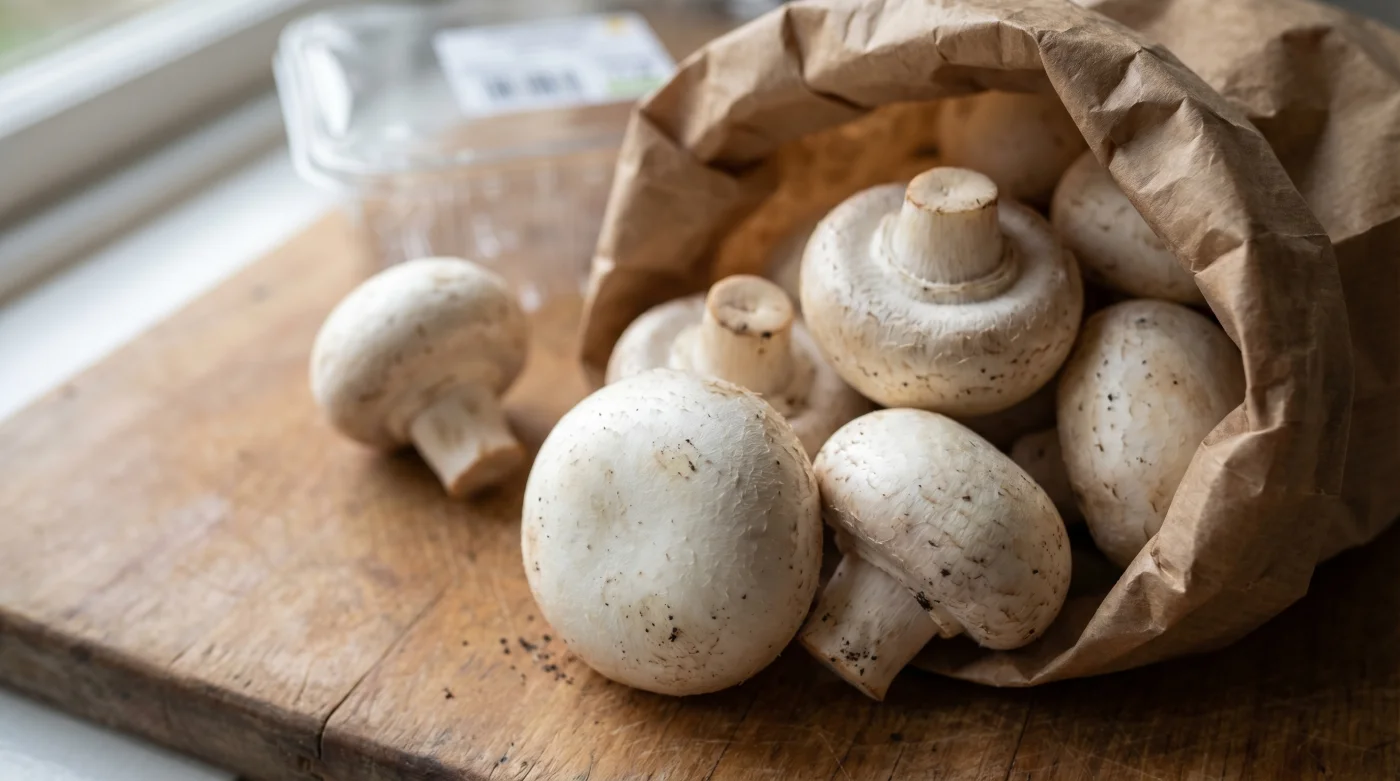 Du kennst diesen Moment: Du öffnest den Kühlschrank, das weiche Licht fällt auf das Gemüsefach, und dort liegt sie – die blaue Plastikschale mit der straff gespannten Folie. Darunter sammeln sich feine Wassertropfen. Das ist der Moment, in dem aus festen, erdigen Champignons unmerklich eine weiche, bräunliche Masse wird. Der Geruch, der eigentlich an einen ruhigen Herbstwald erinnern sollte, bekommt eine leicht säuerliche Note.