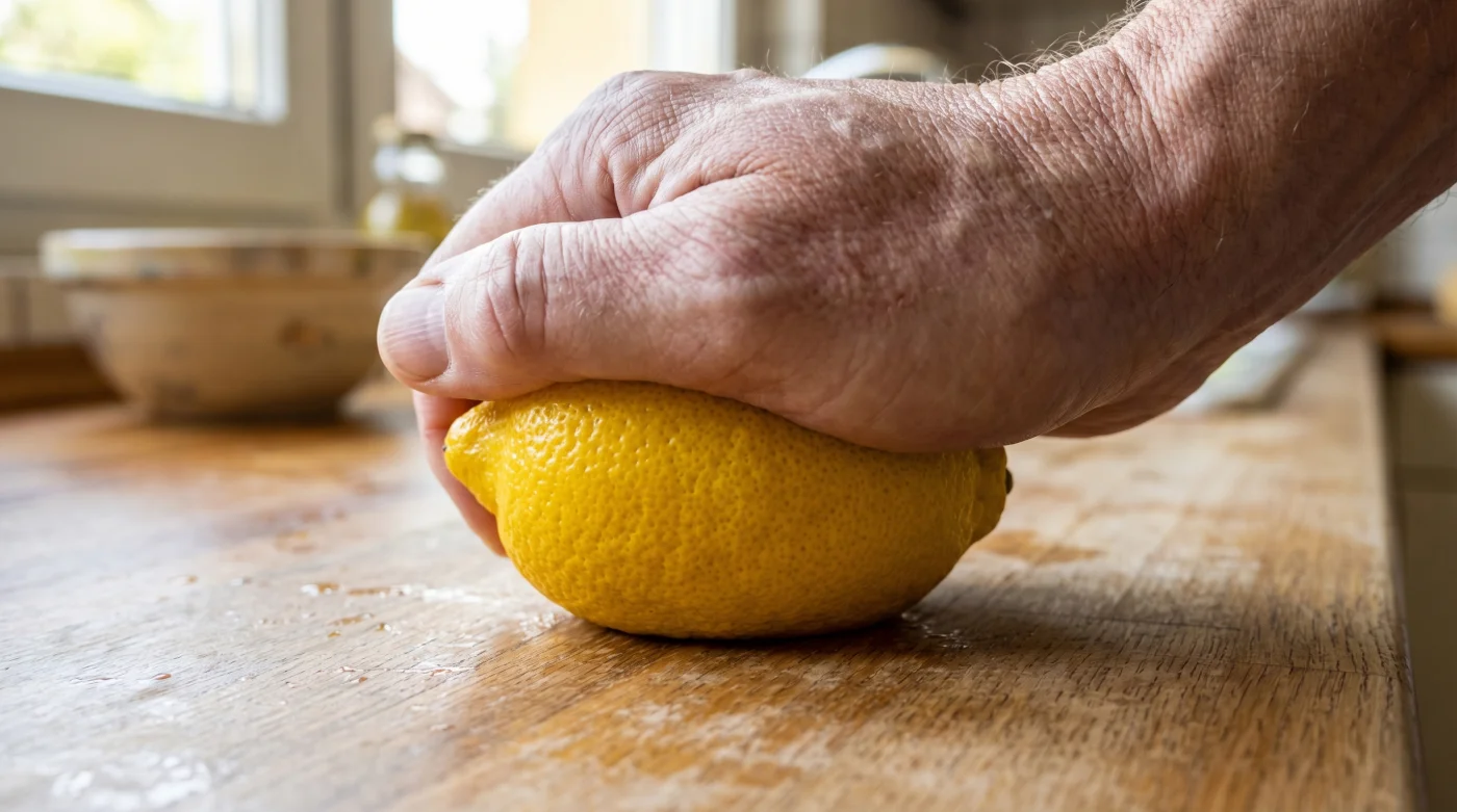 Die Ausführung ist simpler, als man denkt, wenn man auf die Details achtet. Lege die Zitrone auf eine unnachgiebige Oberfläche, idealerweise massiver Stein oder dichtes Holz. Ein wackeliges Plastikbrett schluckt die nötige Energie. Platziere deinen Handballen mittig, halte die Finger entspannt nach oben und verlagere dein Gewicht minimal nach vorn.