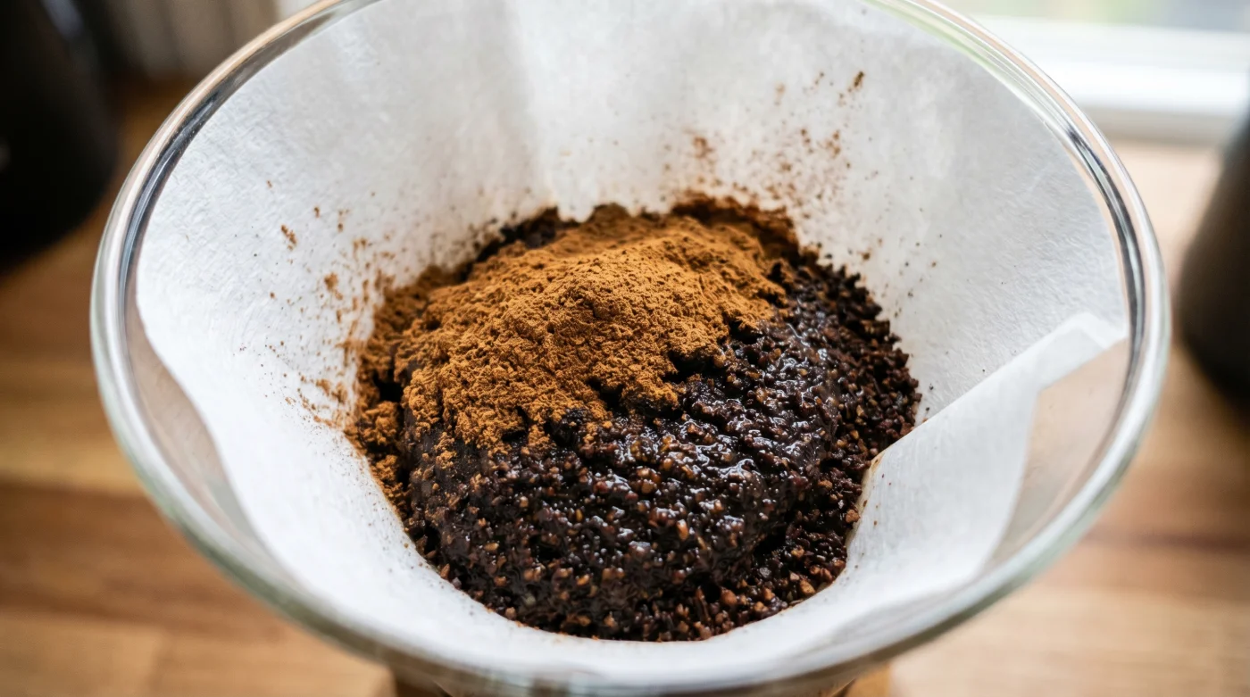 Achte darauf, dass das Wasser stets gleichmäßig durch das Pulver sickert. Vermeide hastiges Nachgießen, da dies die feinen Zimtpartikel an den Rand spült, wo sie ihre puffernde Wirkung verlieren.
