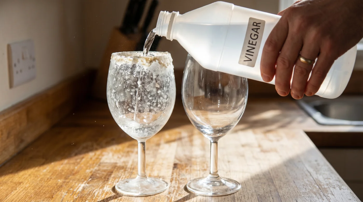 Es ist der klassische, wunderbar faule Trick, der genau dann greift, wenn man eigentlich frustriert aufgeben und die Gläser per Hand spülen will. Kein Schrubben, kein Polieren nötig. Ein einfacher, flüssiger Handgriff reicht völlig aus, um das Licht wieder ungebrochen und kristallklar durch das Glas tanzen zu lassen.