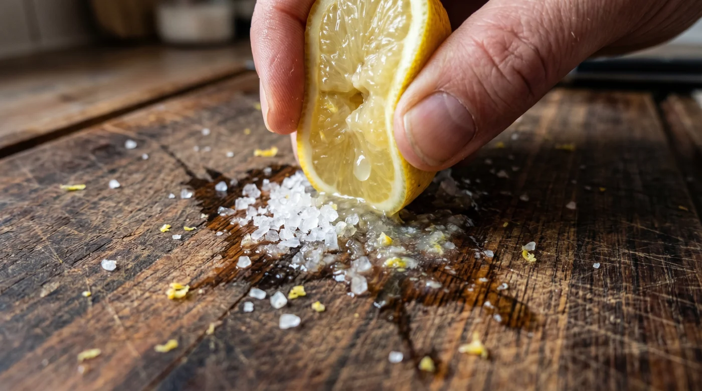 Dein taktisches Werkzeugset für diesen Prozess ist herrlich minimalistisch und kostet fast nichts. Zwei Esslöffel grobes Meersalz, eine ansonsten nutzlose, ausgepresste Zitronenhälfte und exakt drei Minuten passive Geduld. Mehr braucht es absolut nicht, um den chemischen Prozess der Geruchsneutralisierung, Tiefenreinigung und sanften Keimabtötung erfolgreich abzuschließen.